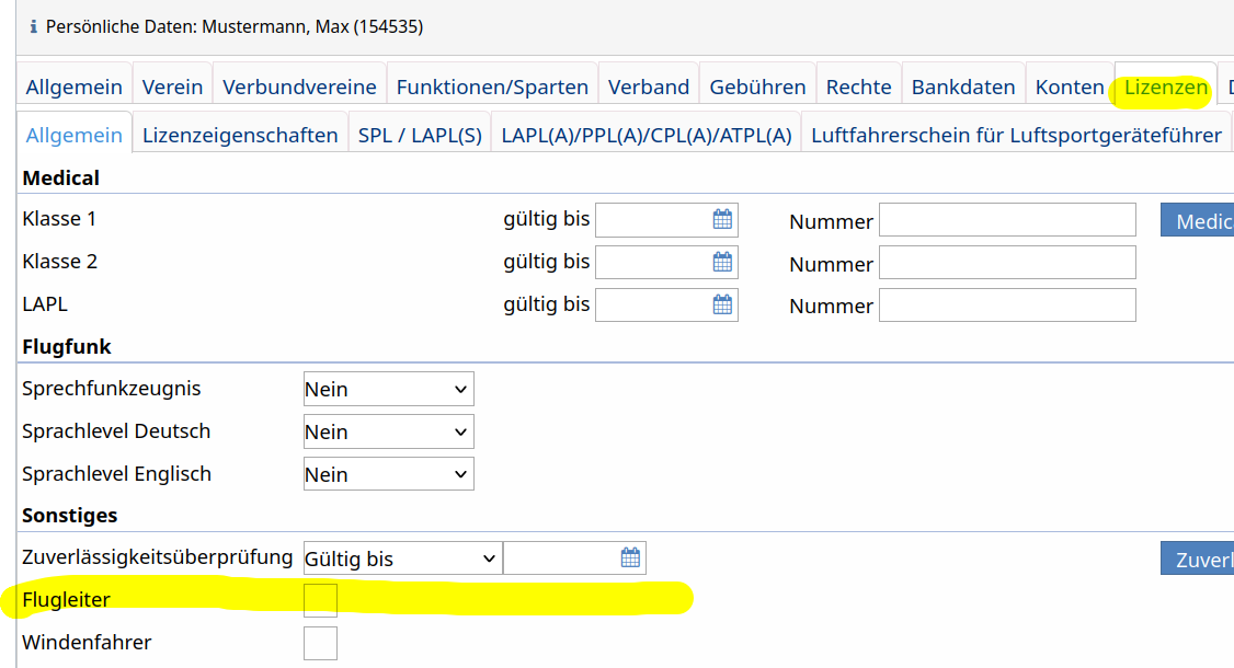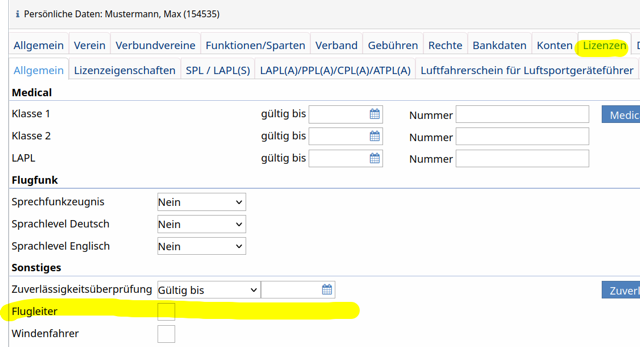 WICHTIG: Um vereinsintern den Ausbildungsstand zu tracken, bitte ich Euch nach erfolgter Teilname den Tab "Lizenzen" auszufüllen (vgl. Screenshot) - und mit Ablaufdatum: 29.02.2028 UND mir (wagner@edep.de <mailto:wagner@edep.de>) eine E-Mail zu schreiben, so dass ich Euch die Rechte zum Flugleitern entsprechend verlängern kann.